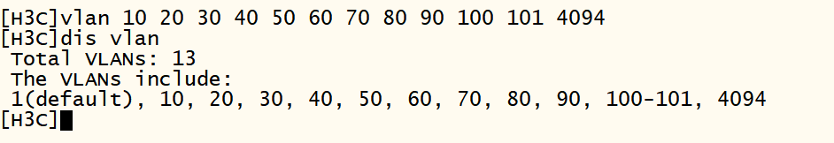 需要在交换机上创建10 20 30 40 50 60 70 80 90 100 101 4094这几个VLAN,能不能批量创建?