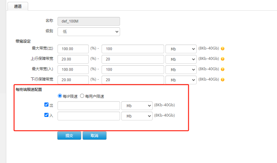 怎么设置让上行也保持20M,框中的全部设置20M吗