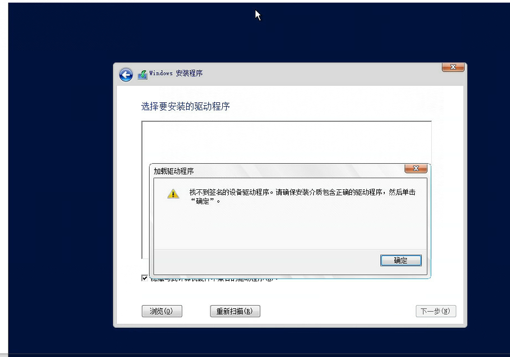 通过服务器HDM上传Windows server 2016安装包进行安装,到选择安装位置提示找不到驱动程序