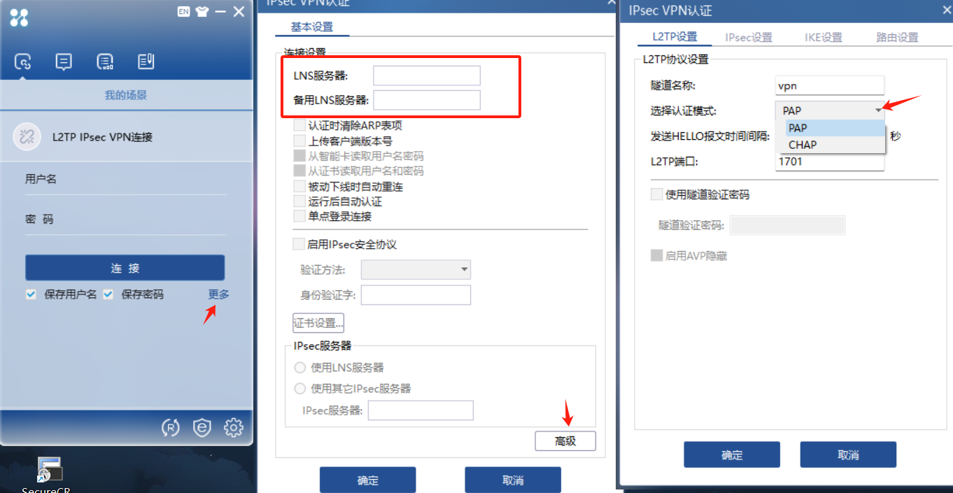 使用iNode客户端里面填写对应的用户名和密码还有认证方式