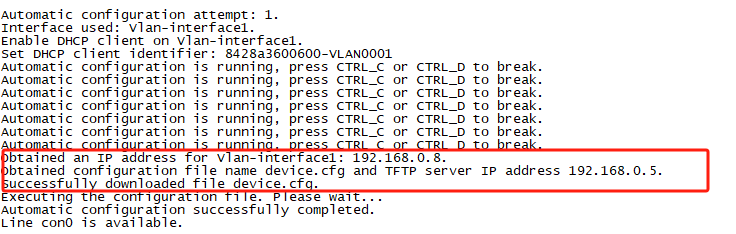 S6850_1作为DHCP服务器,电脑配置tftp服务器。其他交换机启动后自动从TFTP服务器获取配置文件,并执行该文件,以实现:网络管理员能够通过Telnet方式登录、控制设备。但是模拟器中拖拽出来的新设备(空配置)并没有自动获取配置文件,得点击设备进入命令行后回车几次才能获取配置文件。想请教一下,这是模拟器bug还是真机开局时也需要这样。