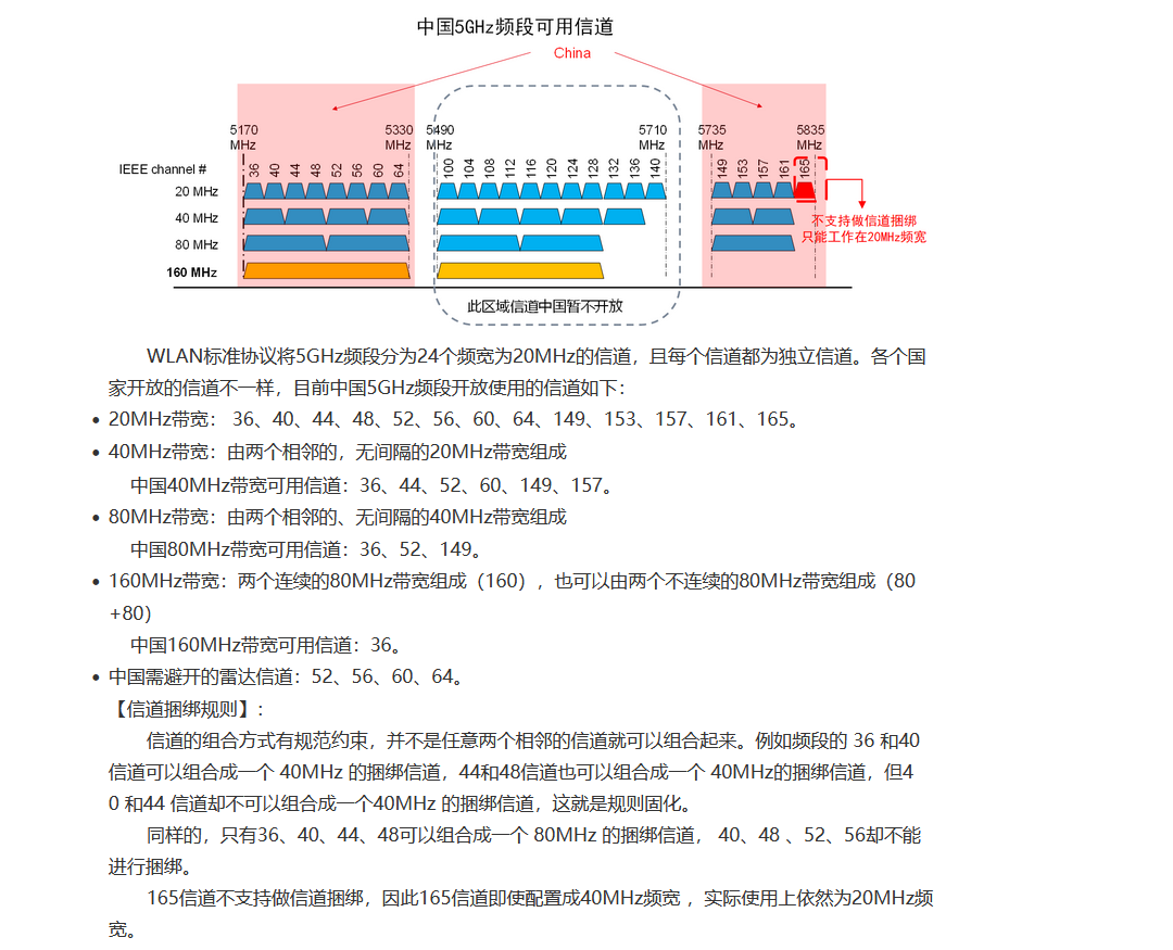 无线频宽160 信道36-64 可以随便选择信道嘛?如果用52的话,前面的36-48是否再用? 还是说用了160频宽随便写一个36-64就可以?
