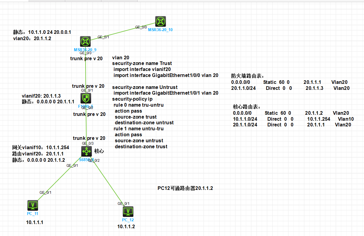 添加了地址vlanif20:20.1.1.3和ip route-static 0.0.0.0 0 20.1.1.1 还是通不了