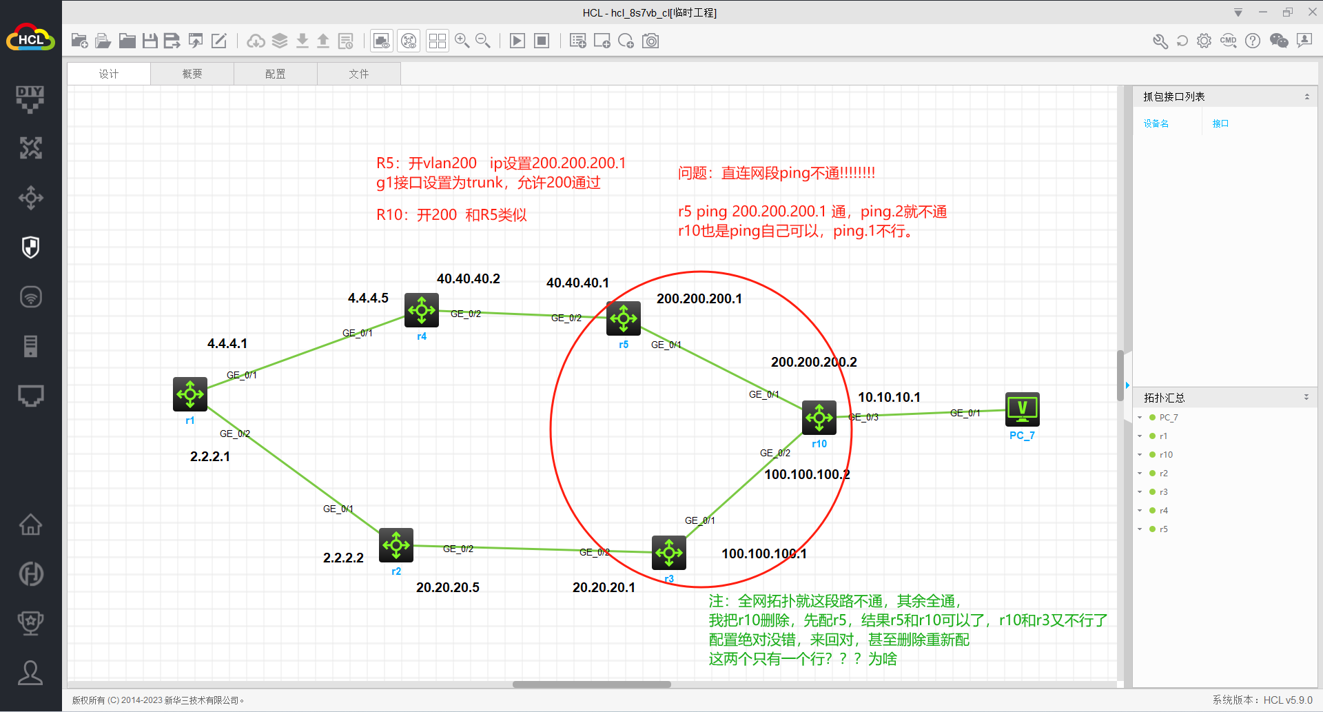 你好,我全部保存重启,结果r5和r10好了,r3和r10又不行了,我dis int brief,发现接口都是UP