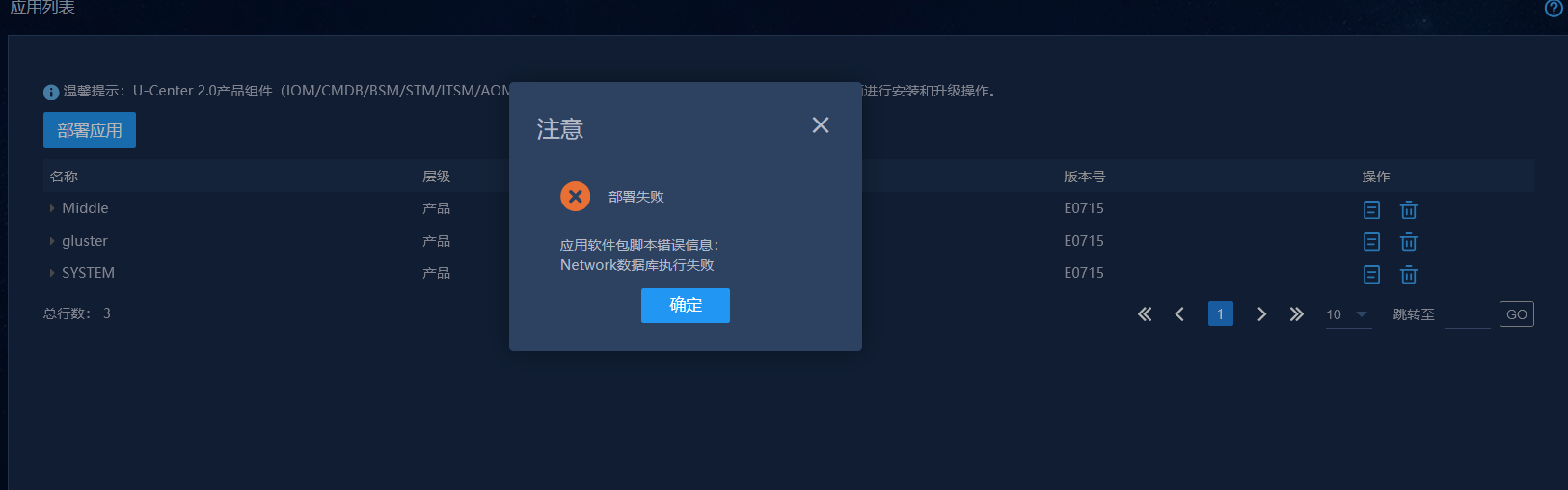 部署网络资源安装包,NSM_FCAPS-Res失败