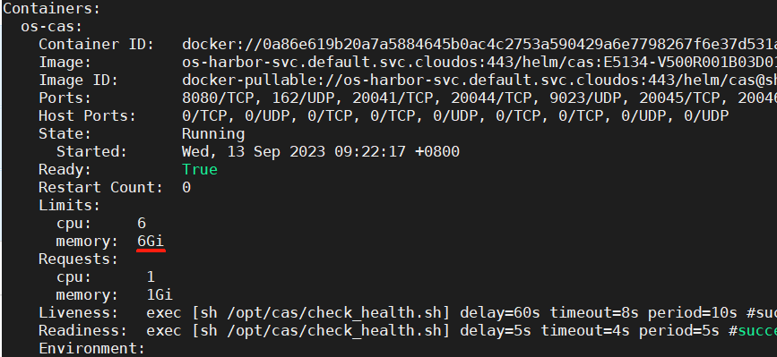 CloudOS,版本是E5134,有告警,提示os-cas-0 (pod) 的容器 os-cas 内存使用率为 92.12%,