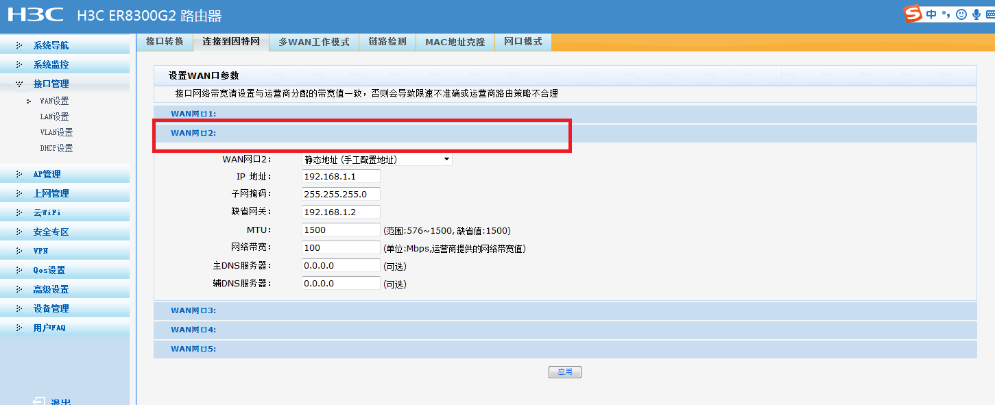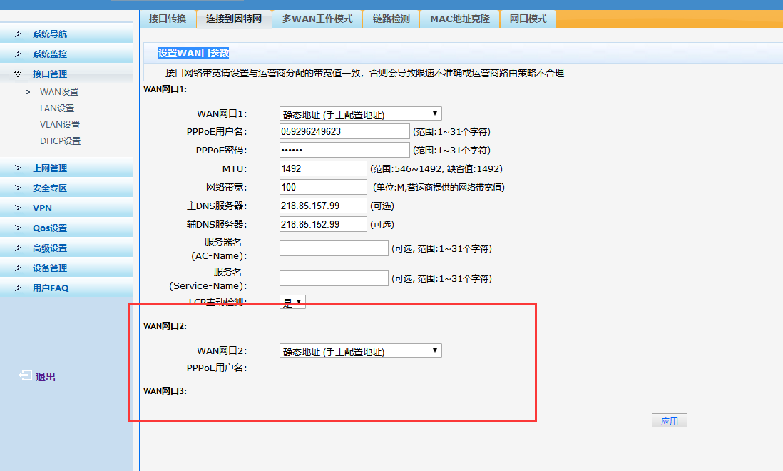 本来是用3条网络的,有一条网络坏了。想切换为两条网络,切换完后就变成这样了!没有办法设置wan网口2