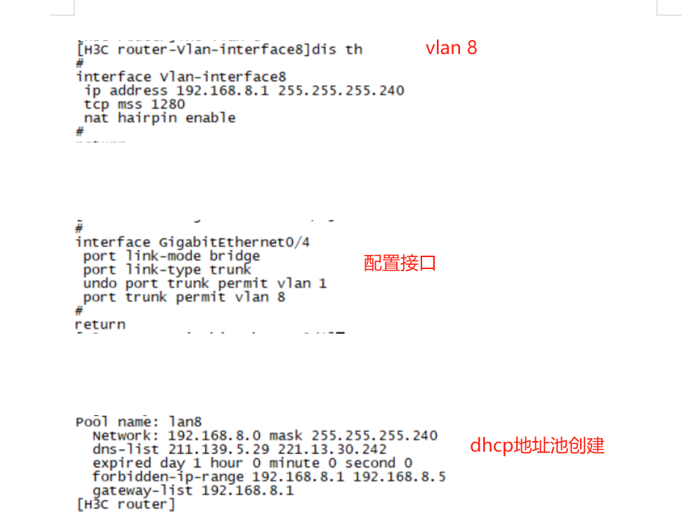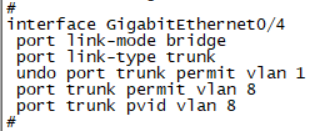 port trunk pvid 8 之前这条命令也配置的有,后来我反复尝试才undo这条命令,现在又把port trunk pvid 8这条命令加上去了,也还是不行啊
