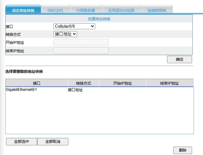 3、NAT配置选择了G1,转换方式选择接口地址