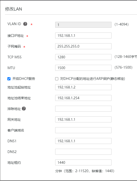 三层交换机S5560设置的Vlan,找不到IP地址池起始设置在哪