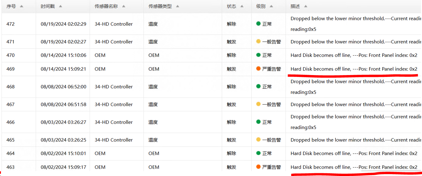 Hard disk becomes off line, ---Pos:Front Panel index:0x2