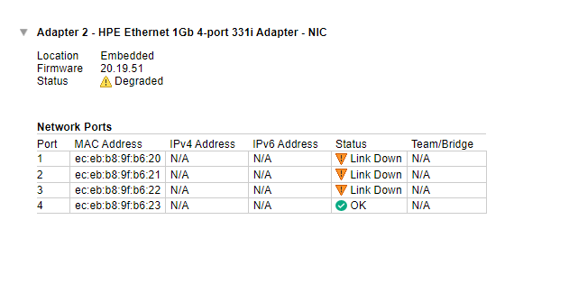 检查LED指示灯:对于HP ProLiant DL360 Gen9服务器,您可以检查前面板上的NIC状态LED指示灯。绿色常亮表示具有到网络的链路,绿色闪烁表示有网络活动,熄灭则表示没有网络活动或链路1。