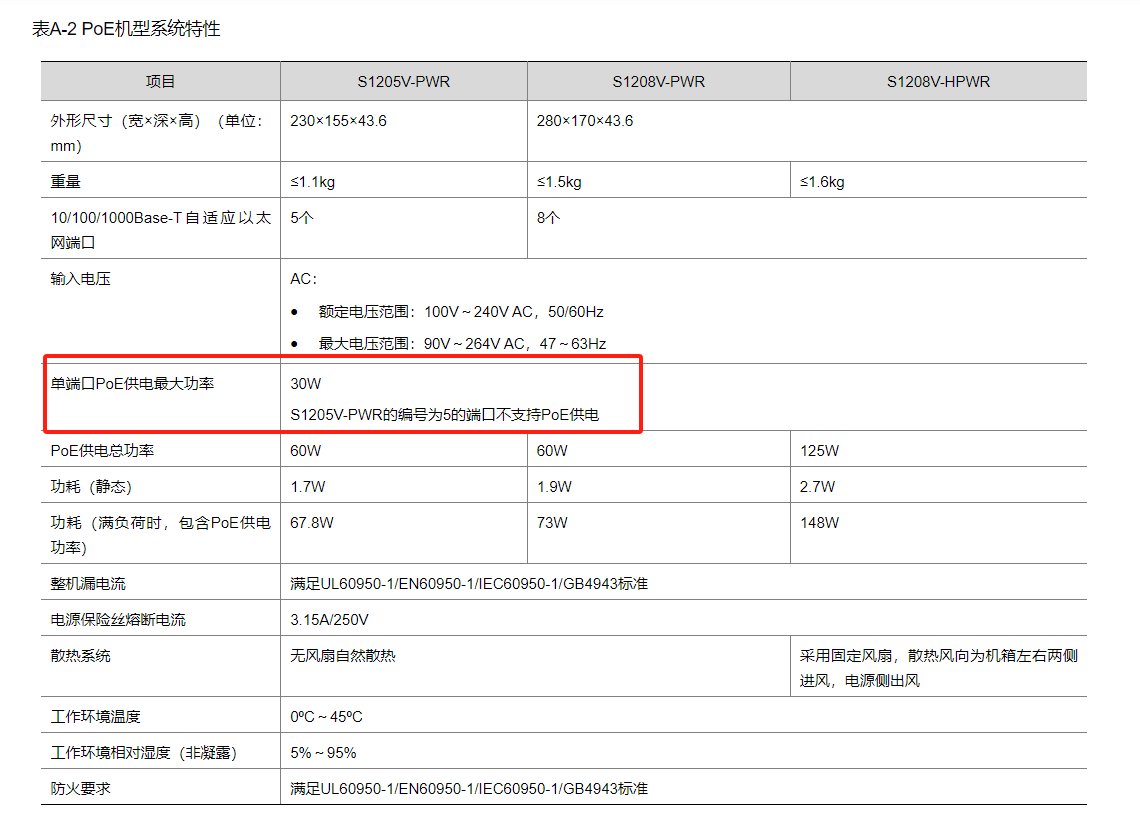 H3C S1205V-PWR 此款交换机的POE 端口支持802.3 af(POE)、802.3 at(POE+)、802.3 bt(POE++)三种标准哪几种,在网上也没找到此款配置手册,我想确认一下支持802.3 at(POE+)吗? 或者固件升级可以支持吗?谢谢!