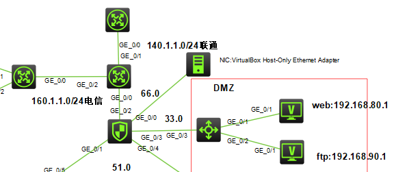 在中间的防火墙上做策略控制,放通所有目的地址是web服务器的目的端口是web服务器端口的,再放通允许访问ftp的源ip到内网ftp服务器地址端口是ftp端口