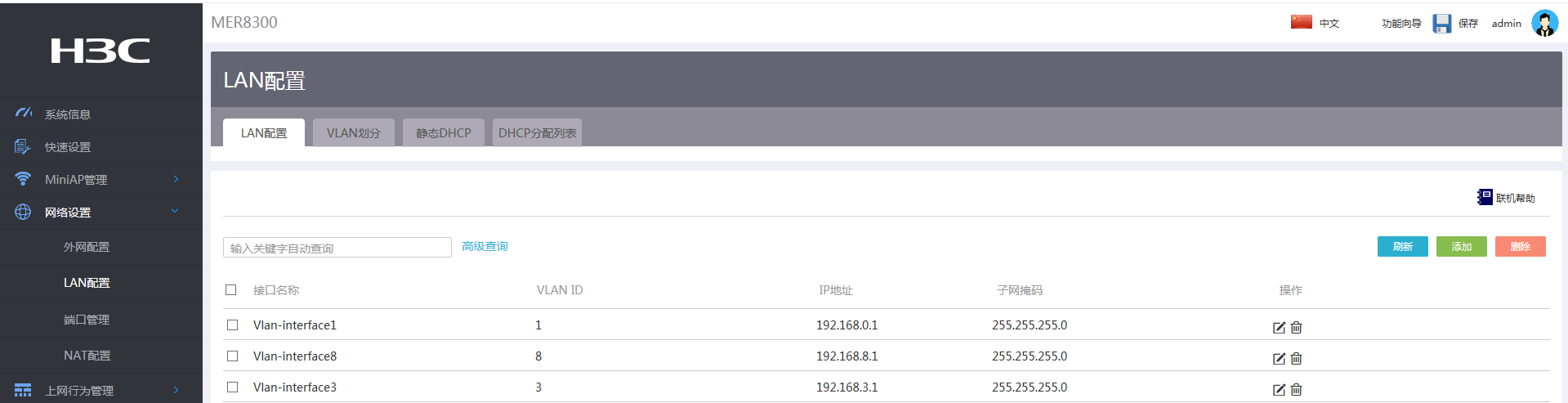 路由器新建了3个vlan,服务器和共享盘用的192.168.0.X为主要vlan,其它用的是192.168.3.X和192.168.8.X