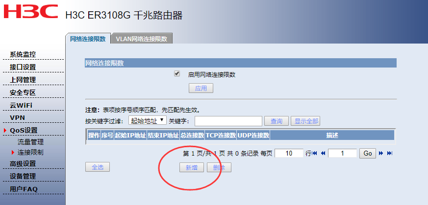 虽然可以启用网络连接限数,但无法新增规则范围(点击新增无任何反应)