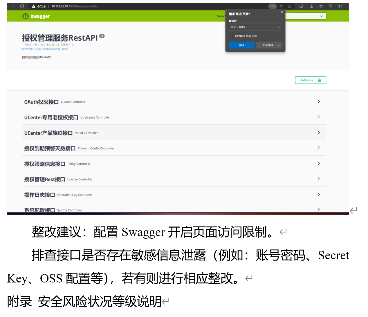您好,关闭对应的swagger或者添加对应多授权访问