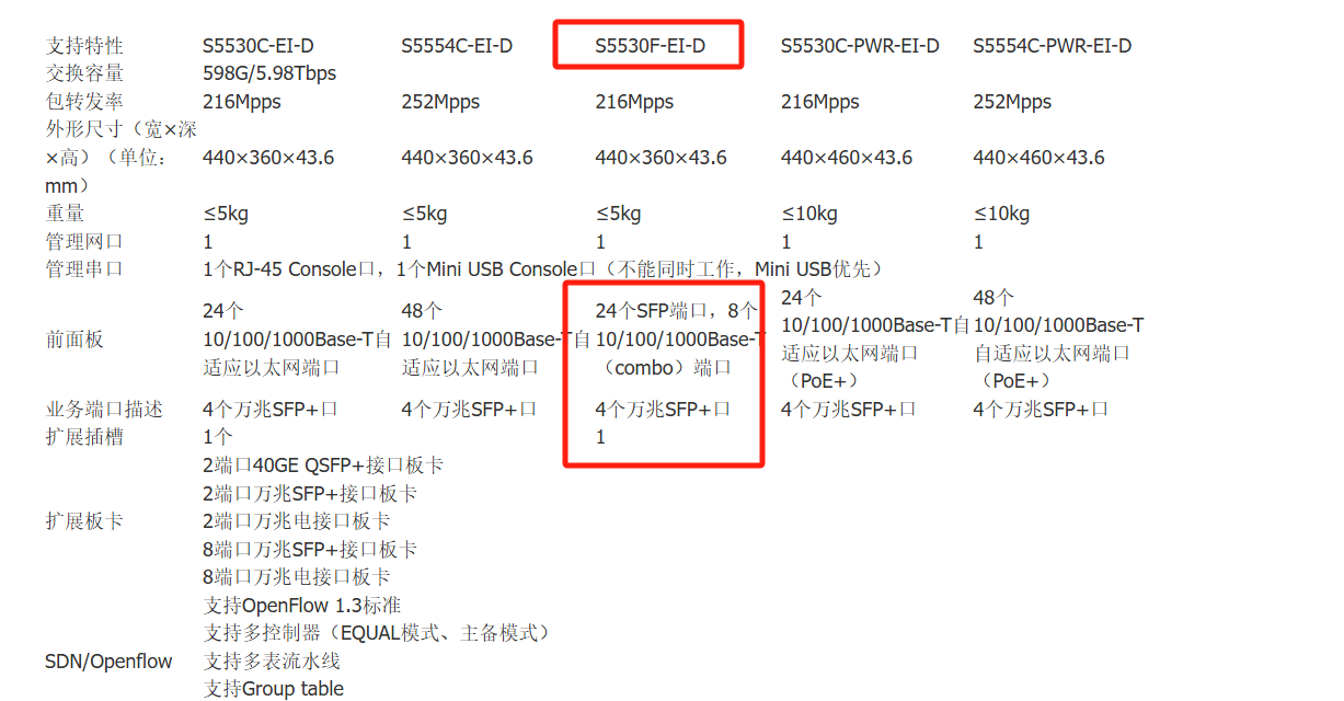 S5530F-EI-D-H5 请问一下各位大拿 这款交换机参数是啥 官网没找到 有没有万兆