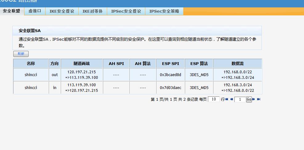 我公司使用飞鱼星路由器VE1520G与华三路由器ER5200G2,建立了IPSEC网对网的VPN,也显示连接成功了,但这两个网络却无法相通,互PING内网和网关也不通,不知哪里出问题了