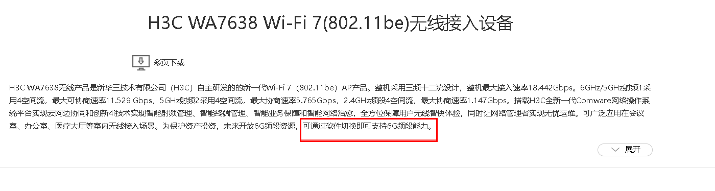 3. 由于大陆法规要求不允许使用6 GHz,因此即使WA7638的Radio 1可以正常释放6 GHz频段,但是在大陆合法售卖的Wi-Fi 7终端都在底层禁用了对6 GHz无线服务的发现功能,因此AP可以释放但是终端发现不了,这个是终端侧法规的问题。