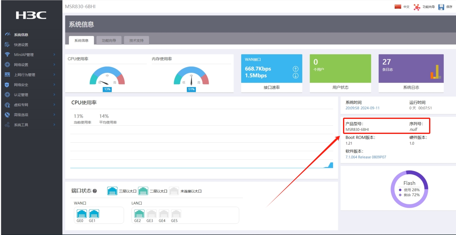 MSR5200路由器重启后产品型号变成MSR830-6BHI,序列号一栏也不显示了,没有主动升级过路由器版本