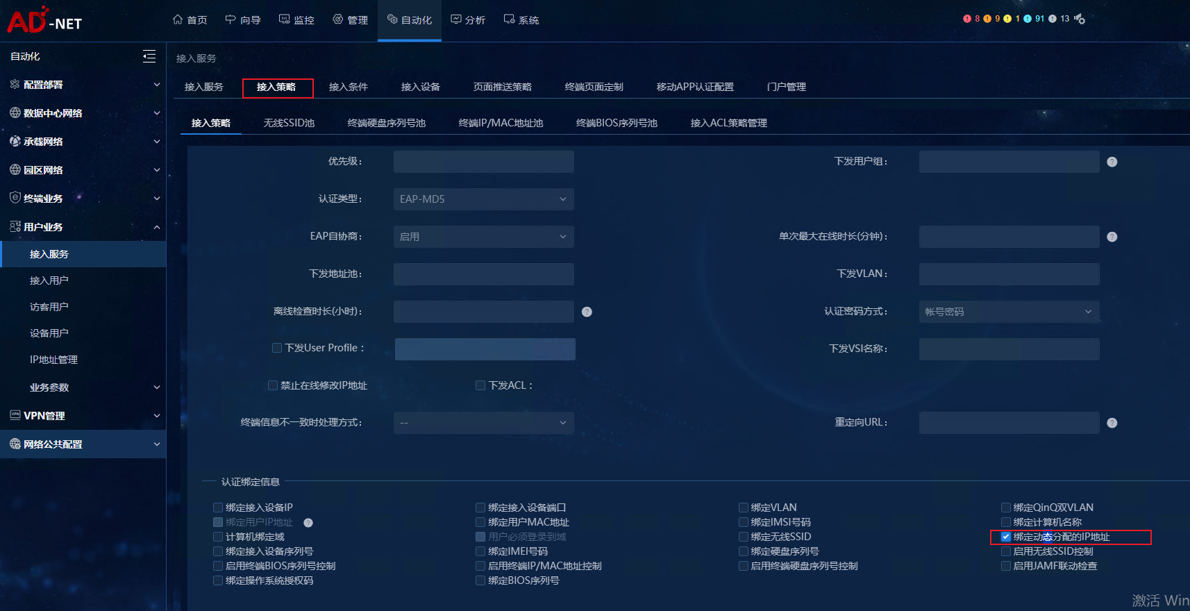 您好,是手动配置IP地址吗,接入策略中是否勾选了绑定用户IP地址,如果勾选了去勾选再上线试一下。