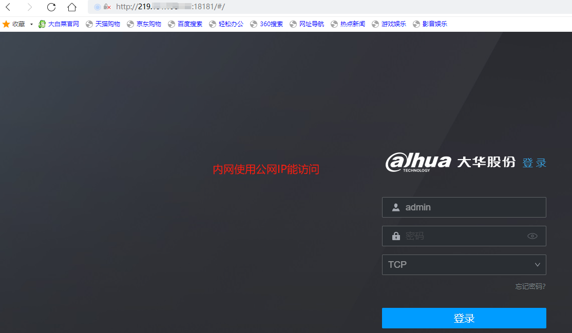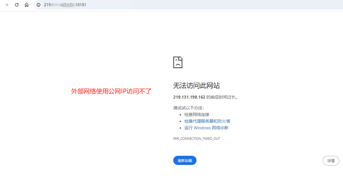 nat server 后,内网使用公网IP能访问设备,外部网络使用公网IP访问不了。