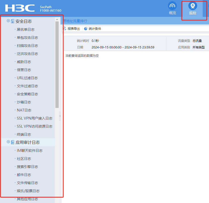 AK1160防火墙WEB界面-监控里面的所有日志都是空的,请问在哪开启啊