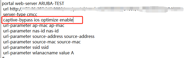 if-match original-url http://captive.apple.com/hotspot-detect.html user-agent Mozilla temp-pass redirect-url +服务器的url