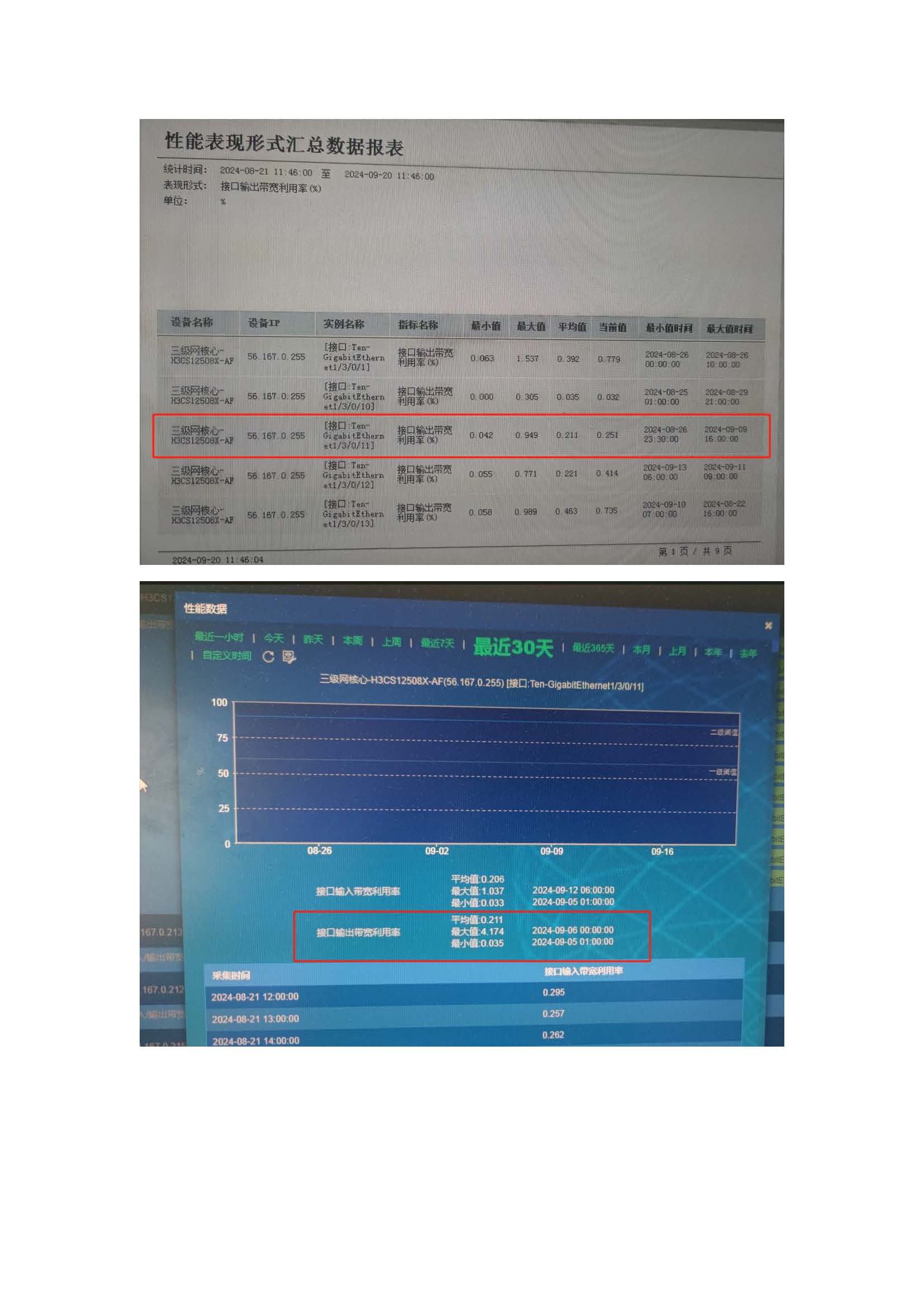 通过IMC平台监测交换机端口输入和输出带宽利用率,为什么从两个不同地方查到的接口输出带宽利用率数值为什么不一样?一个是导出的报表数值,一个是性能视图查看的。客户想要这个信息,应该以哪个为准,怎么和客户解释?谢谢指导