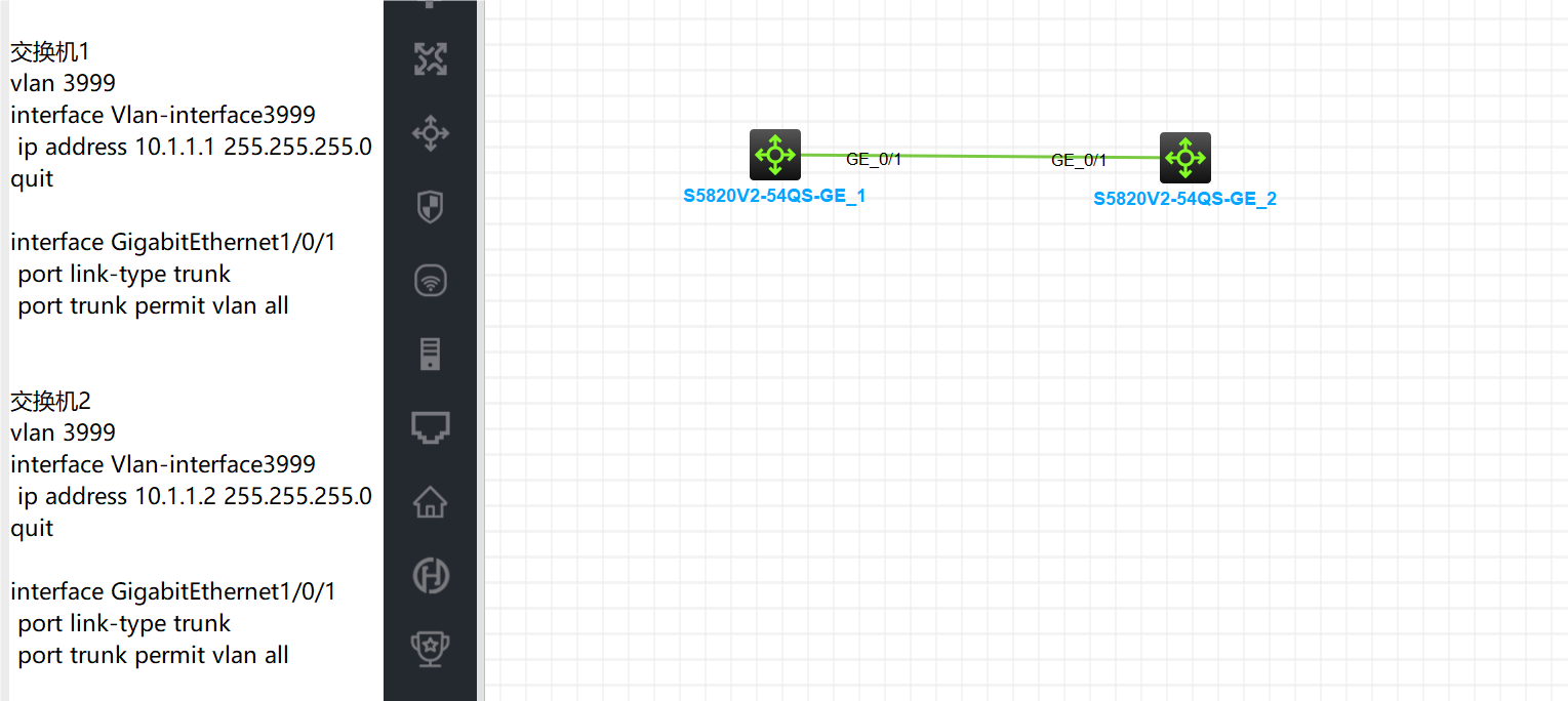 大佬们,如图所示,两个交换机物理直连,模拟器这样配置,两个交换机可以互相ping;
