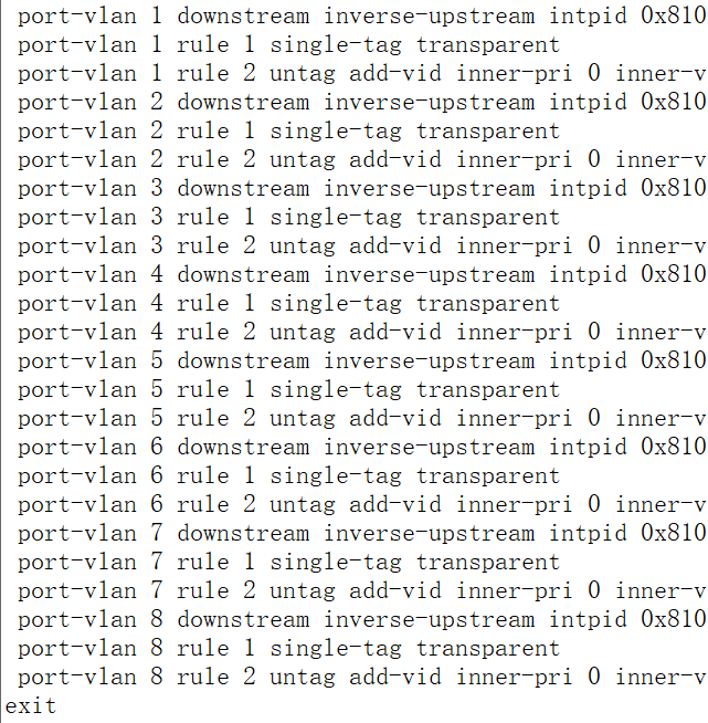 8口ONU,对应的就是port-vlan 1---8,对应ONU前面板就是1---8口