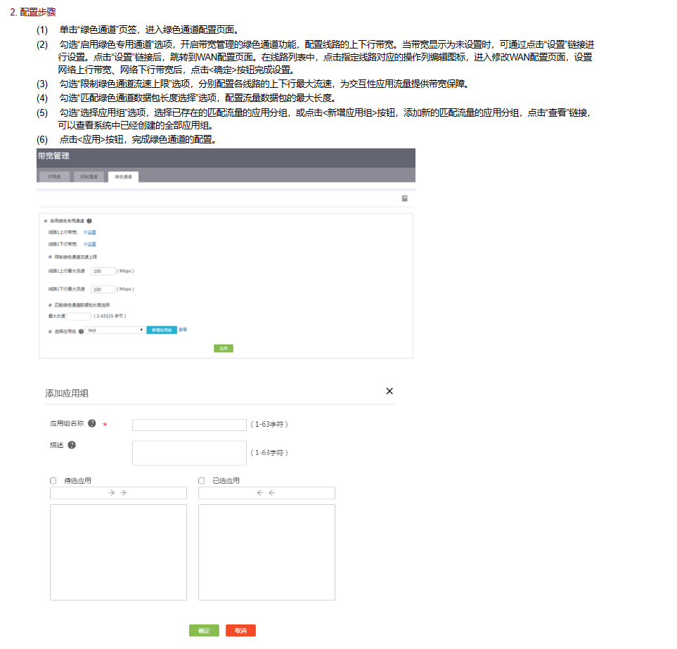 · 请勿将绿色通道带宽设置过大,以免对普通流量产生影响。