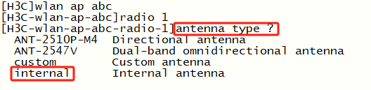 <radio-id> 为射频接口的编号(比如 0 或 1)。<internal> 代表内置天线,<external> 代表外置天线。(0)