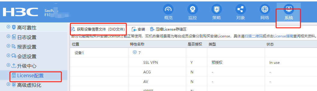 在系统-license配置-获取设备文件DID 中下载。