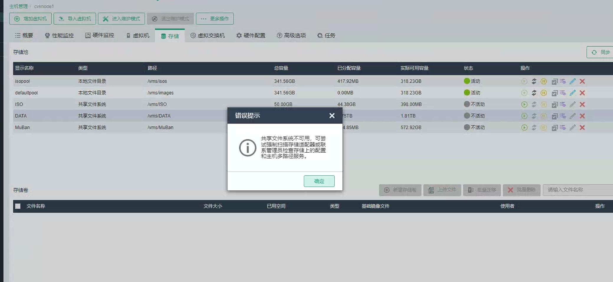 三个节点 备用节点故障 无法启动 共享存储也无法启动 请问如何恢复共享存储 存活的两个节点有一个节点有一个数据盘报故障 再缺少一个节点的情况下能做数据盘更换吗