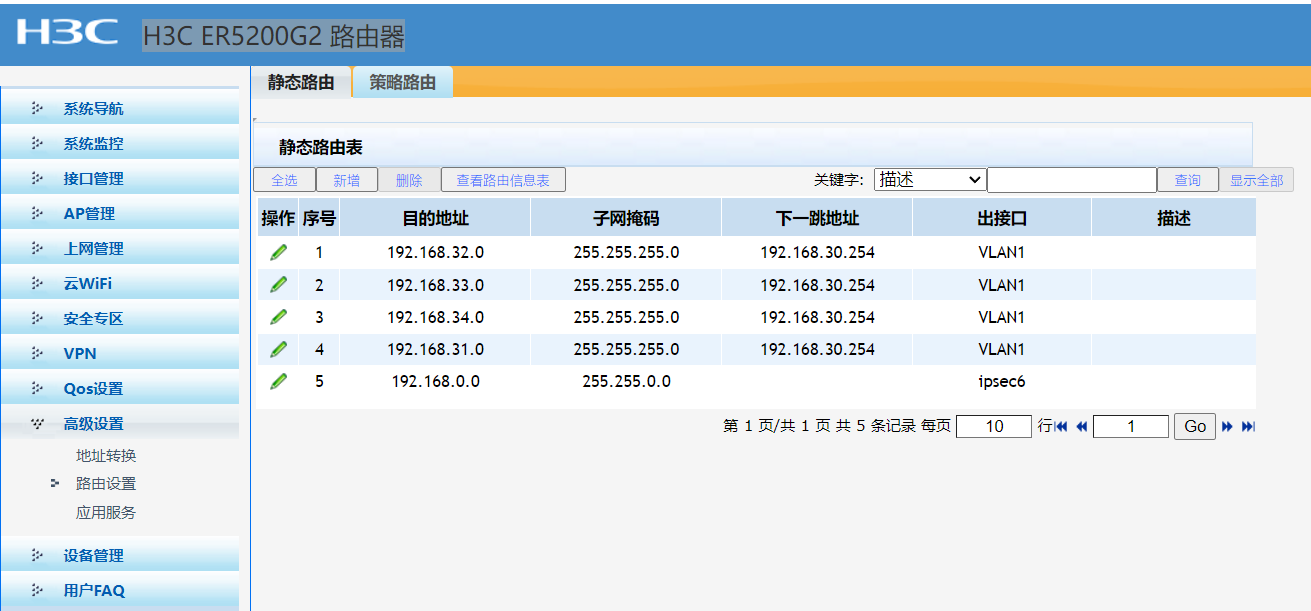 设置了 目的地址:0.0.0.0 子网掩码:0.0.0.0 下一跳地址:58.250.40.58 出接口 WAN2 内网还是 ping不通 58.250.40.58