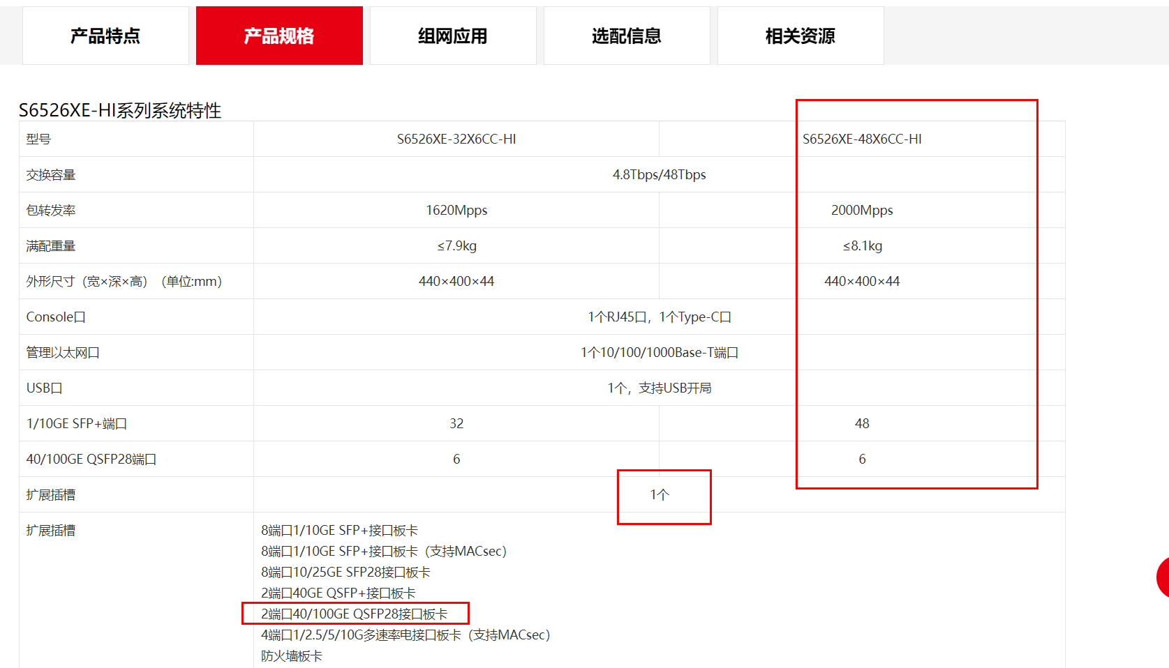 1、交换容量>2.4Tbps,包转发率>660Mpps;(以官网最小值为准) 2,1000M SFP 光口>48个,1C/100 SFP+光口≥4个;设备可提供1个业务扩展 了、配置双电源,2个万兆单模光模块。