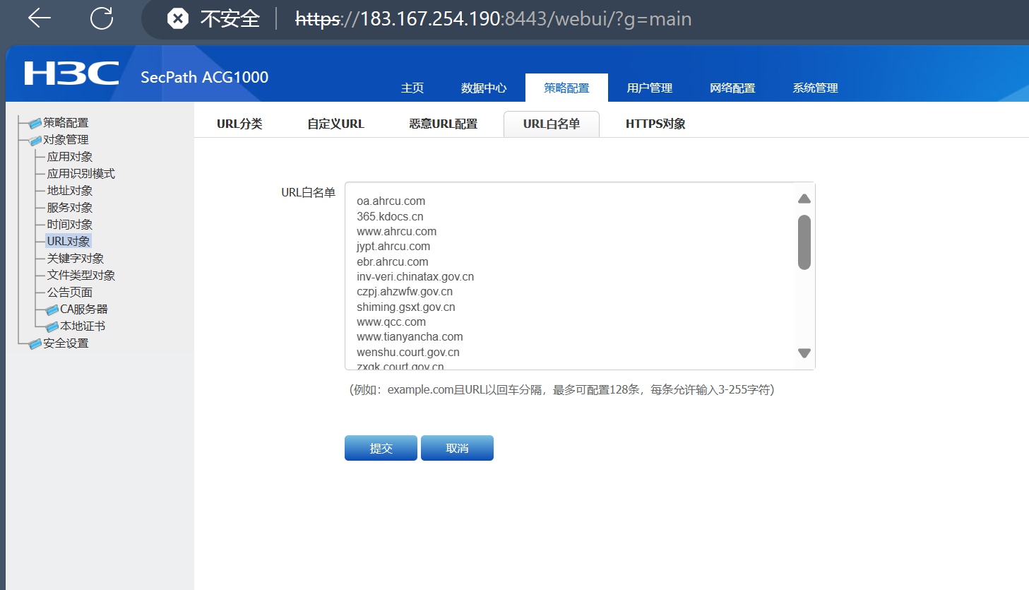 一、ACG1000上URL过滤白名单功能配置