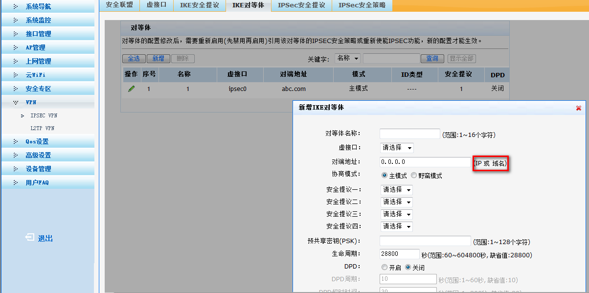 ER这个对等体是支持写域名的,直接写上就行了。配置上没有什么不一样的