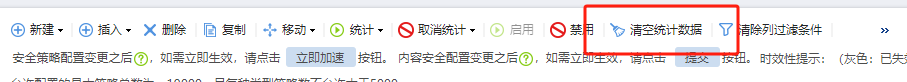 由于策略数量太多了,想清空所有策略命中数,可以在web页面-防火墙-策略匹配统计-源域Gywtrust,Gywuntrust-操作-清零,将所有策略的命中数清零吗