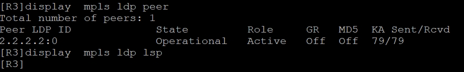 请问如图组网,配置好MPLS后,邻居都建立起来了,为啥没有LSP?