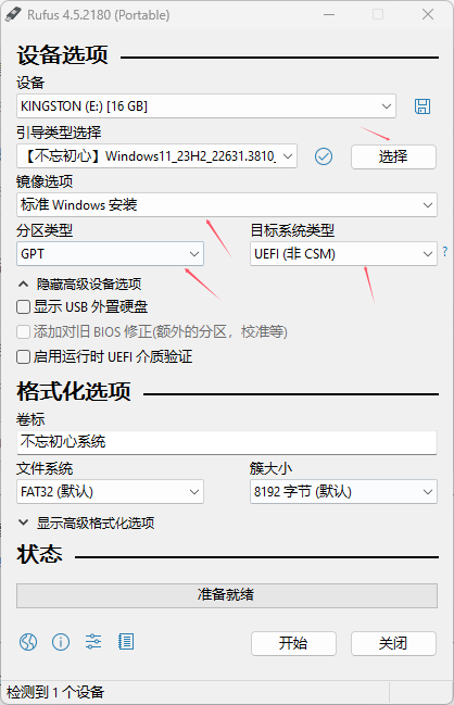 https://rufus.ie/zh/ 去下载一个Rufus 便携本,重新做U盘,