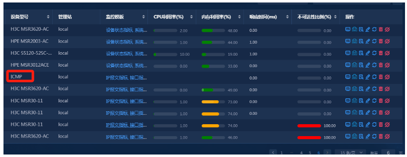 图中有一条设备未获取CPU利用率和内存利用率信息 大概什么原因? 模版都是相同的,也有类似的设备设备不可达,但是能获取cpu利用率和内存利用率什么原因?问题设备均重新添加过了,有无对应用户手册,感谢