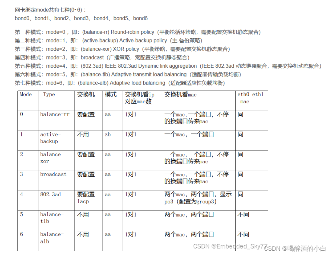 不行,交换机静态聚合服务器bond0或者交换机动态聚合服务器bond4。