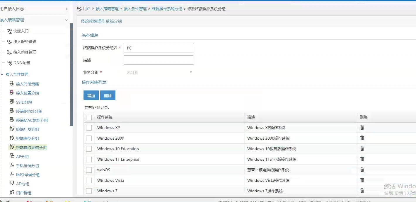 1、新建操作系统识别类型,把pc用的系统类型都勾上,名字叫PC,下面会调用