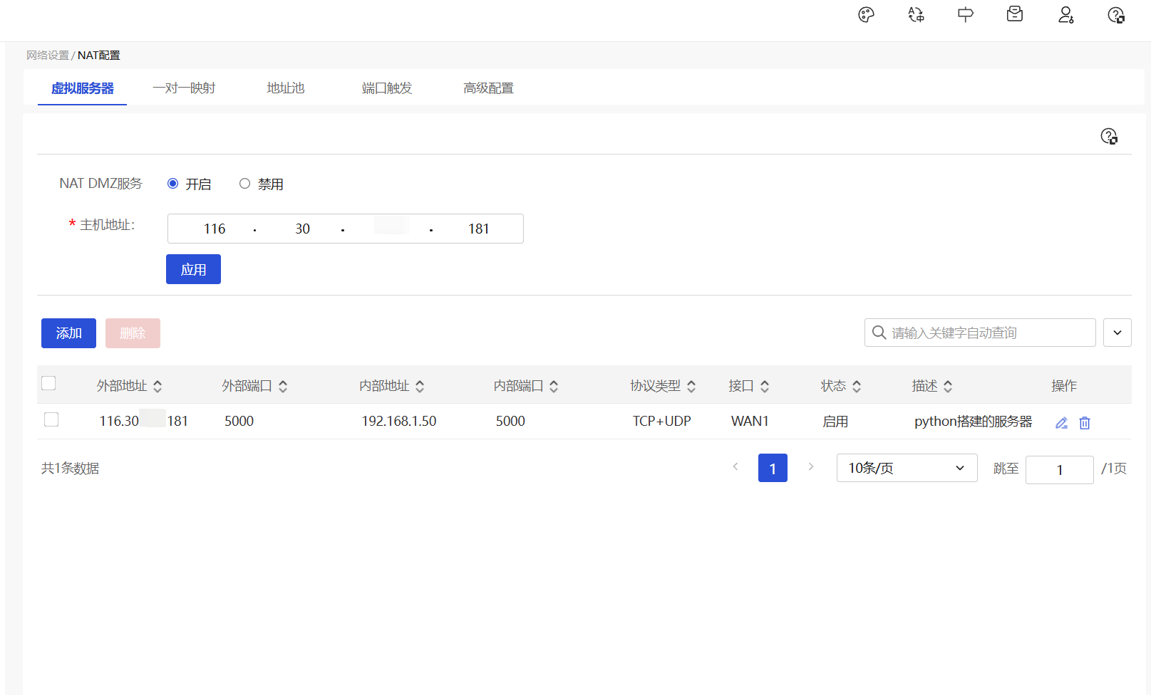 各位大佬,为什么禁用DMZ服务,[公网ip]:5000还是可以转发到[内网ip]:5000端口(表格第一行),这是不一个总开关吗,主机地址应该填什么呢