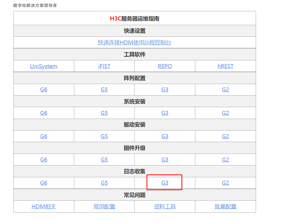 选择G3日志收集,选中对应服务器,之后可以看见阵列卡收集的方法指导