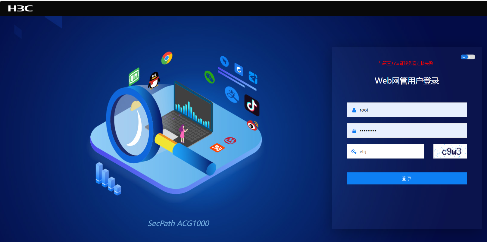 你这个是配置了radius认证登录管理后台,root账户肯定不行