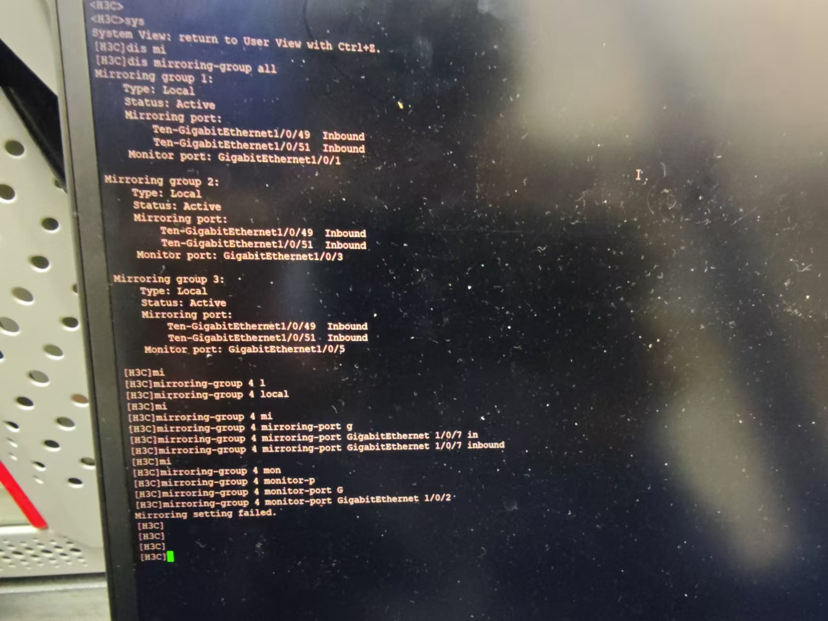 H3C交换机S5570S,已经配置了3组本地镜像流量,但是配置第四组本地镜像配置时提示mirroring setting failed.哪位大神解答下,是不是因为限制了什么无法配置
